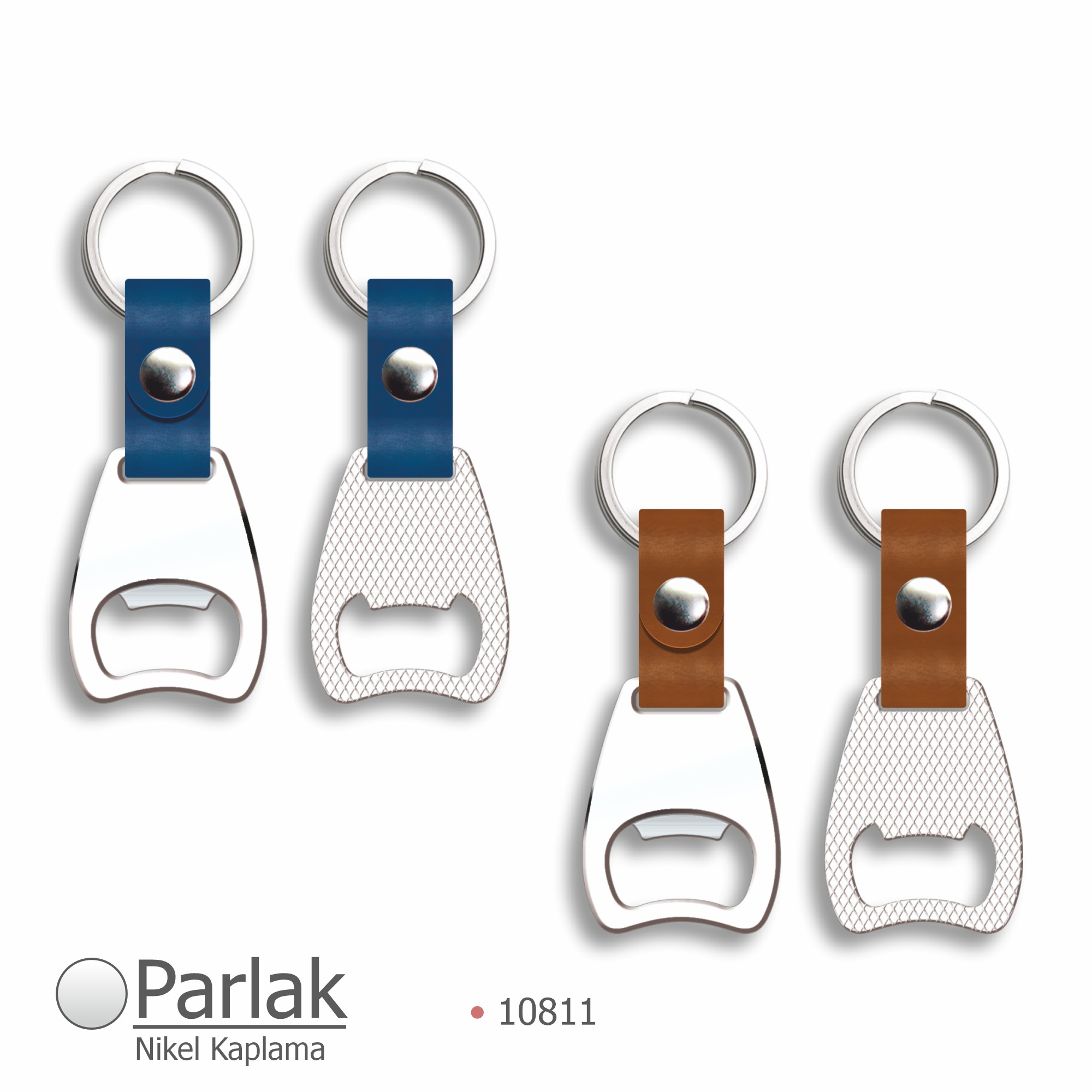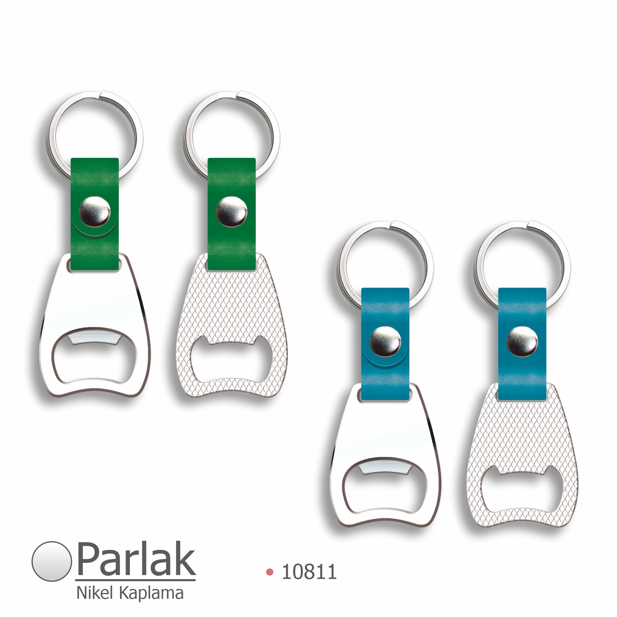Shiny nickel-plated bottle opener keychain + shiny metal ring