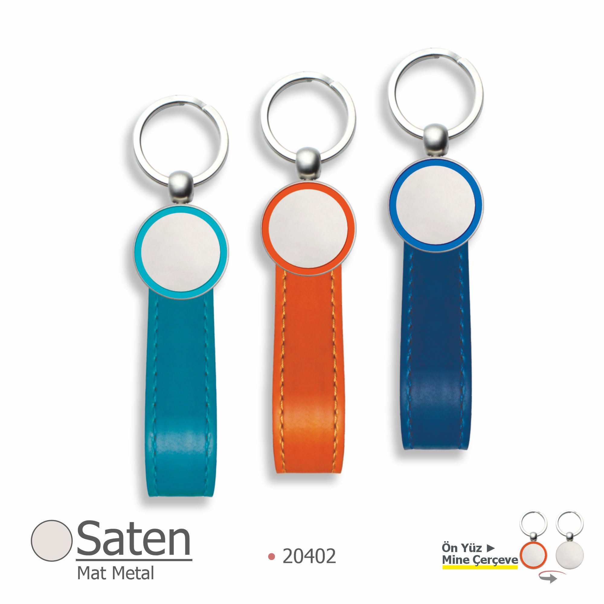 Saten kaplama metal başlıklı ve renkli mineli (çift taraf lazer baskıya uygun) + saten metal halka