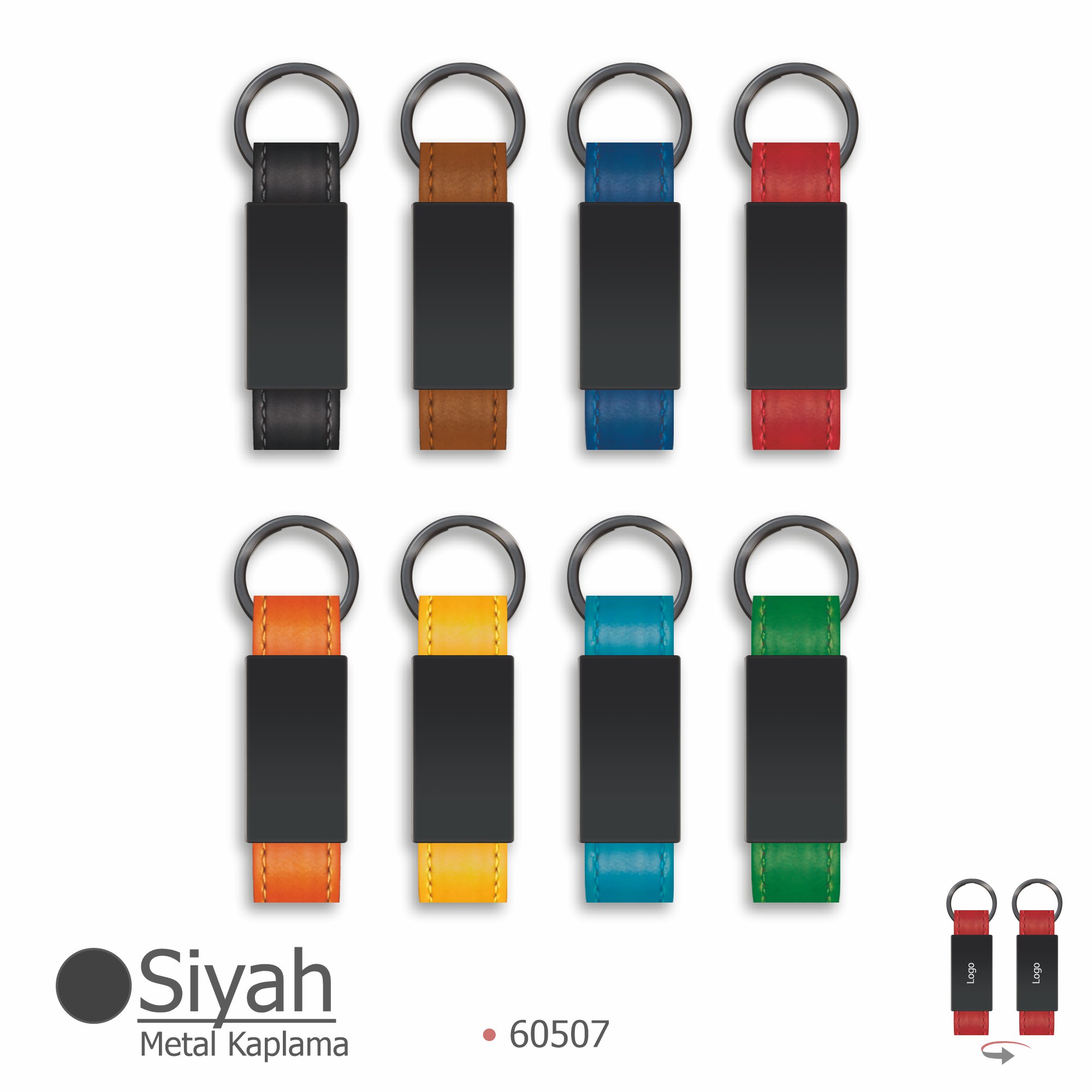 Siyah kaplama metal başlıklı (çift taraf lazer baskıya uygun) + siyah metal halka