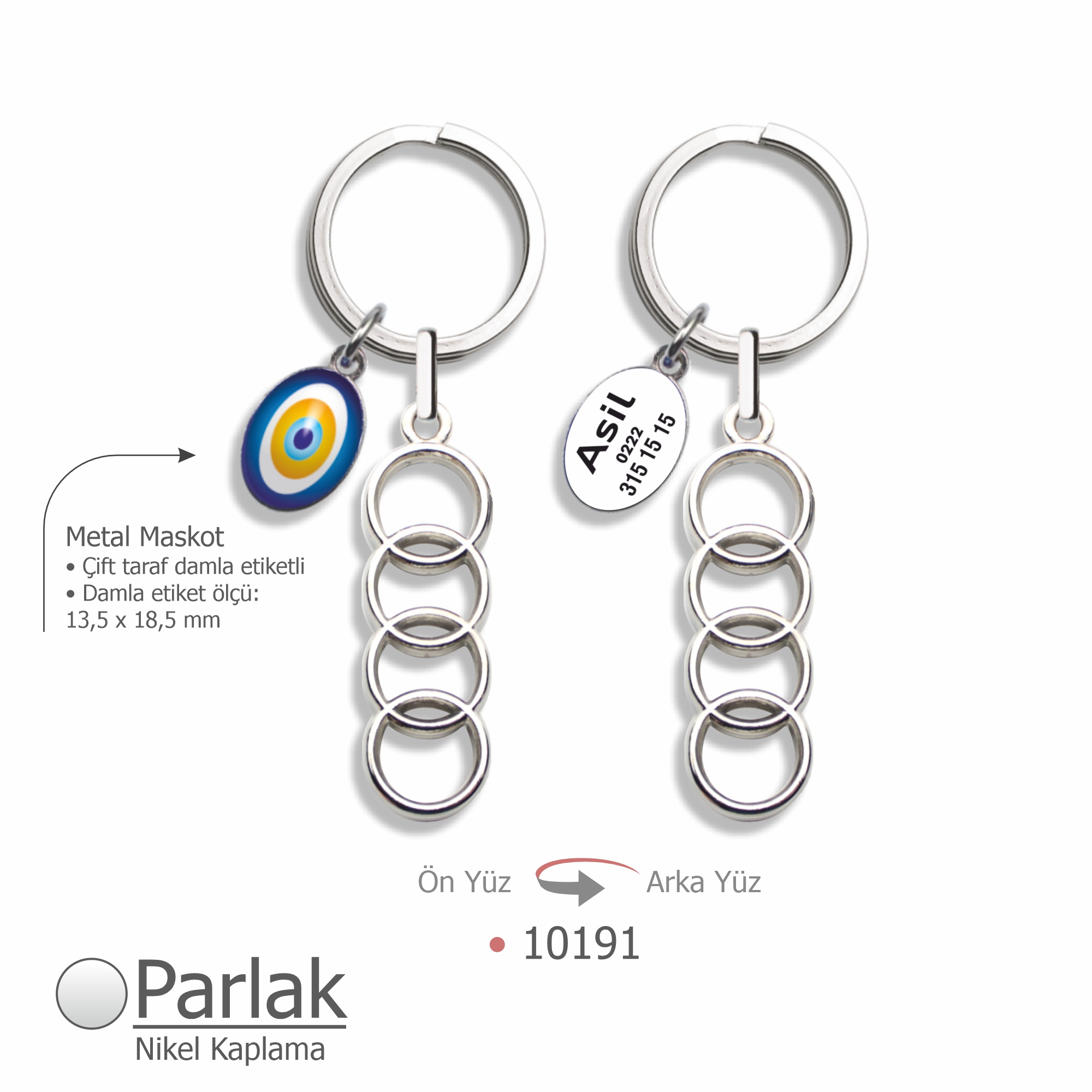 Anahtarlık halkasına takılı metal reklam maskotu, çift taraf damla etiketli