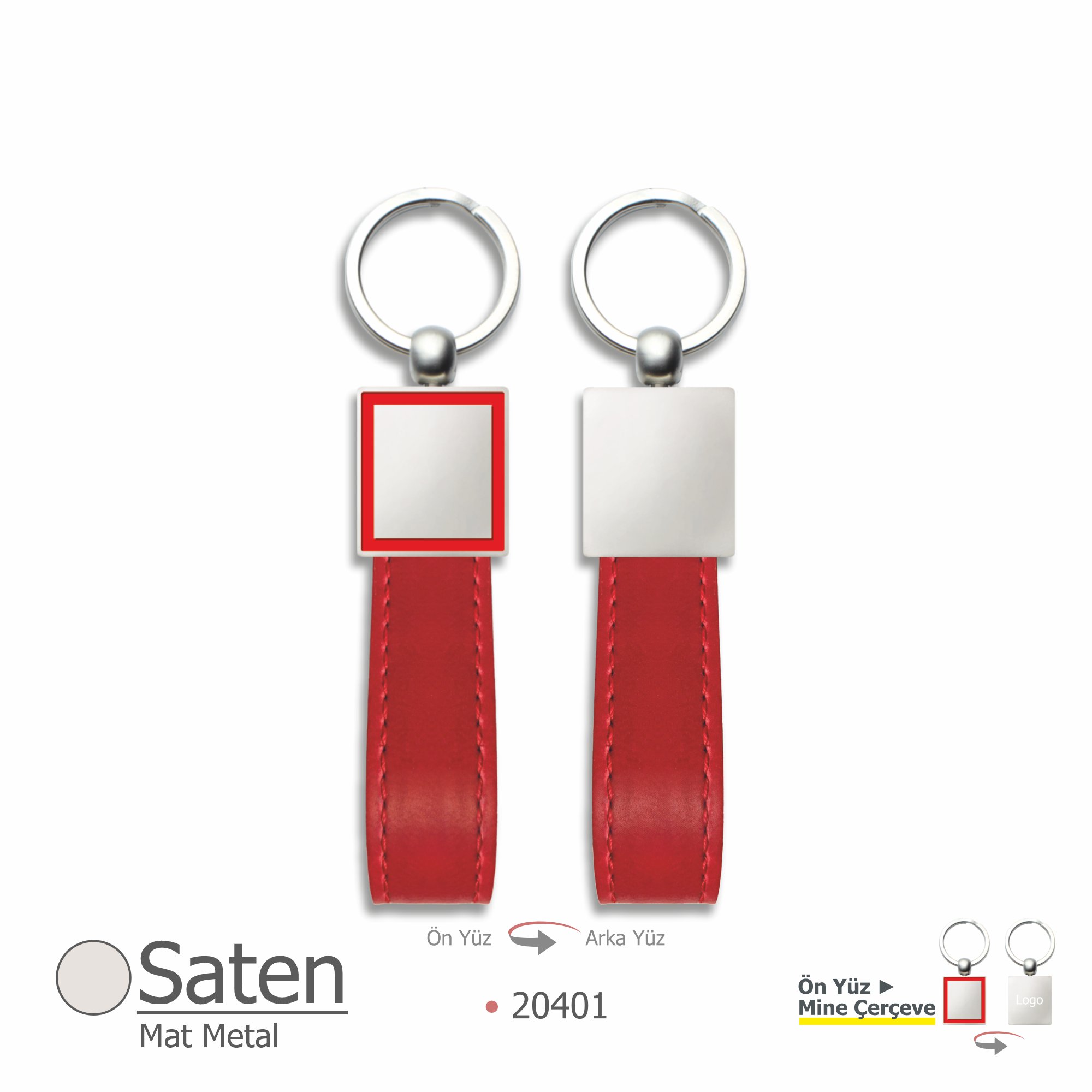Saten kaplama metal başlıklı ve renkli mineli (çift taraf lazer baskıya uygun) + saten metal halka
