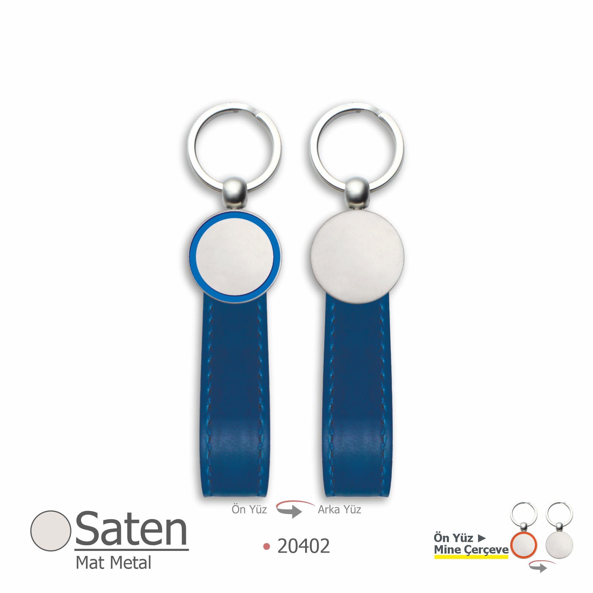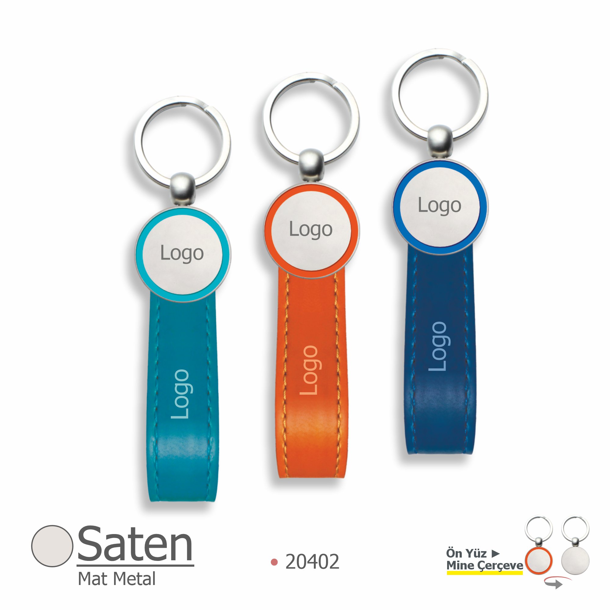 Saten kaplama metal başlıklı ve renkli mineli (çift taraf lazer baskıya uygun) + saten metal halka