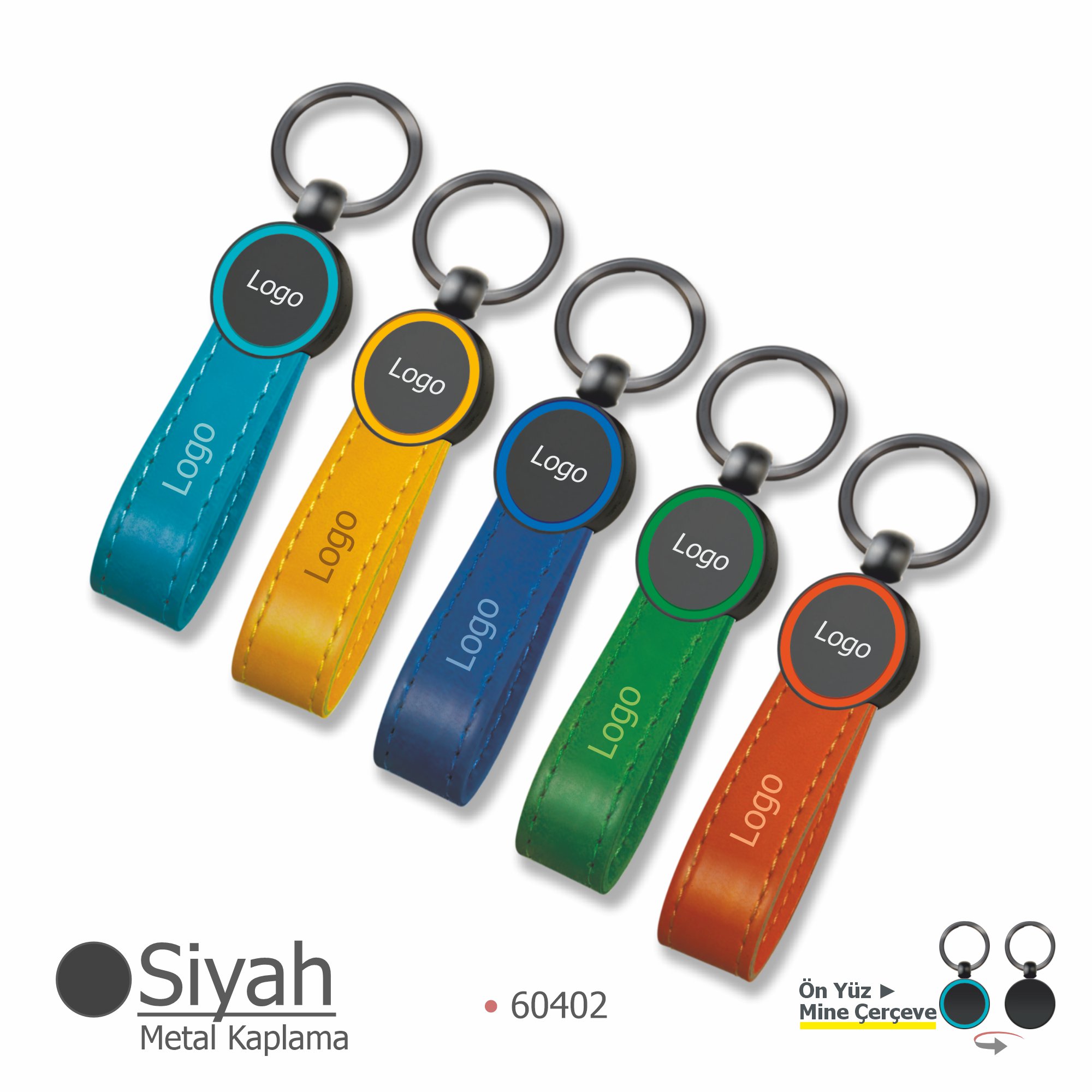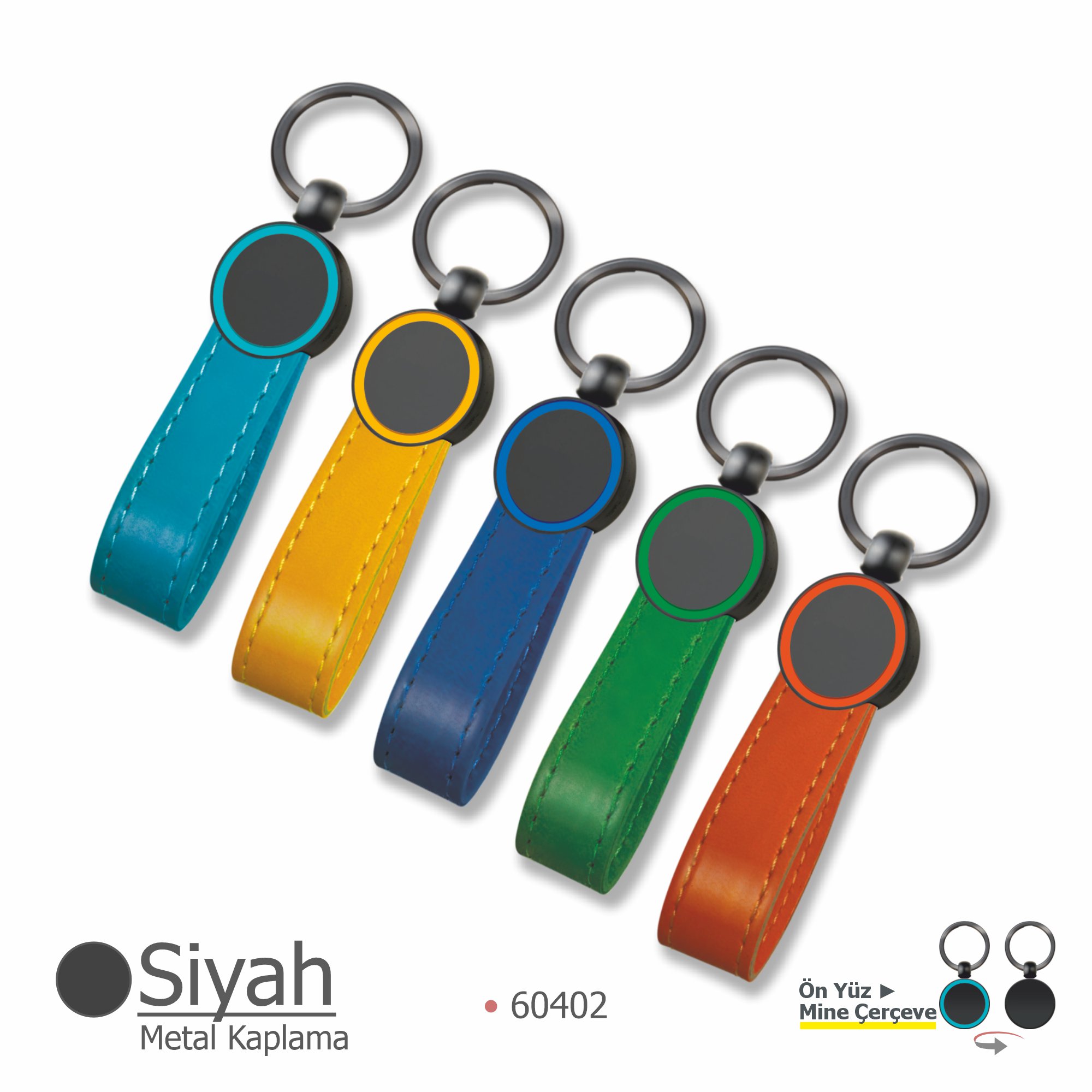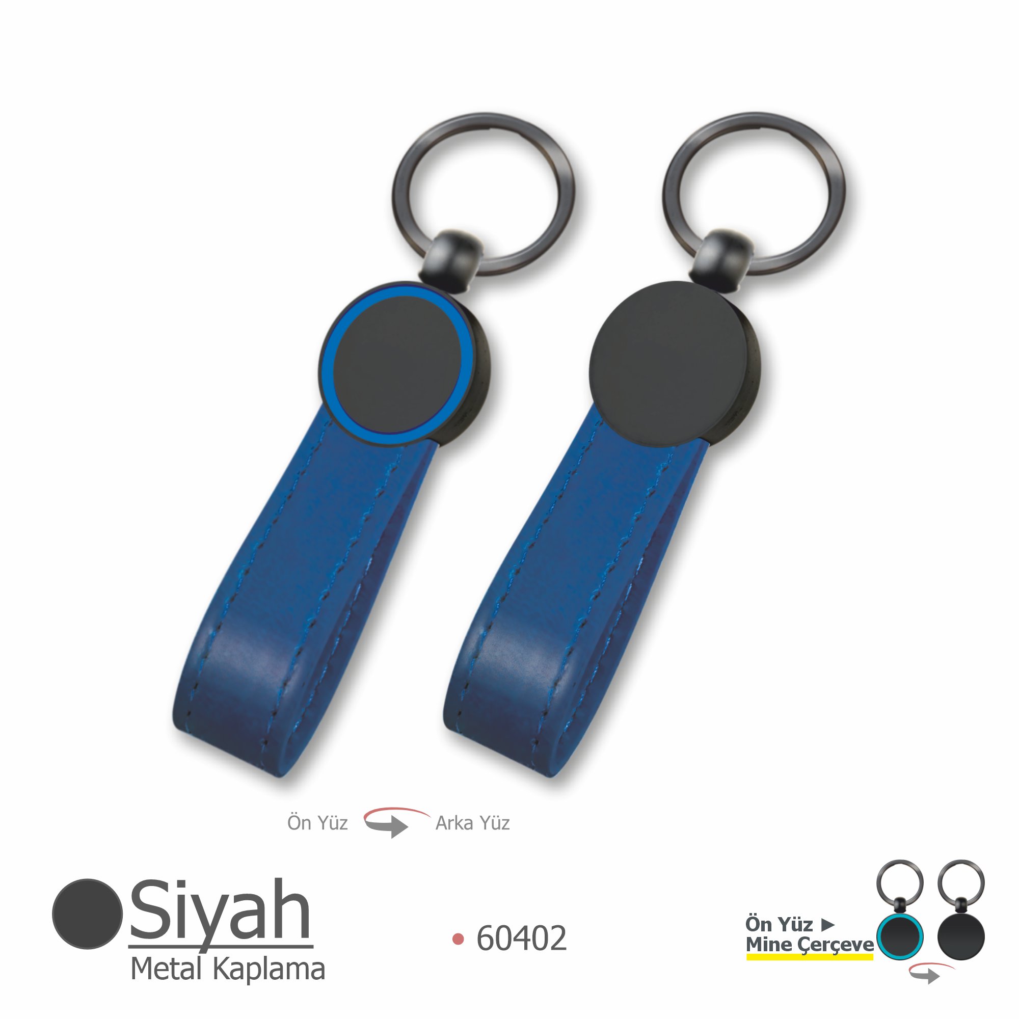 Siyah kaplama metal başlıklı ve renkli mineli (çift taraf lazer baskıya uygun) + siyah metal halka