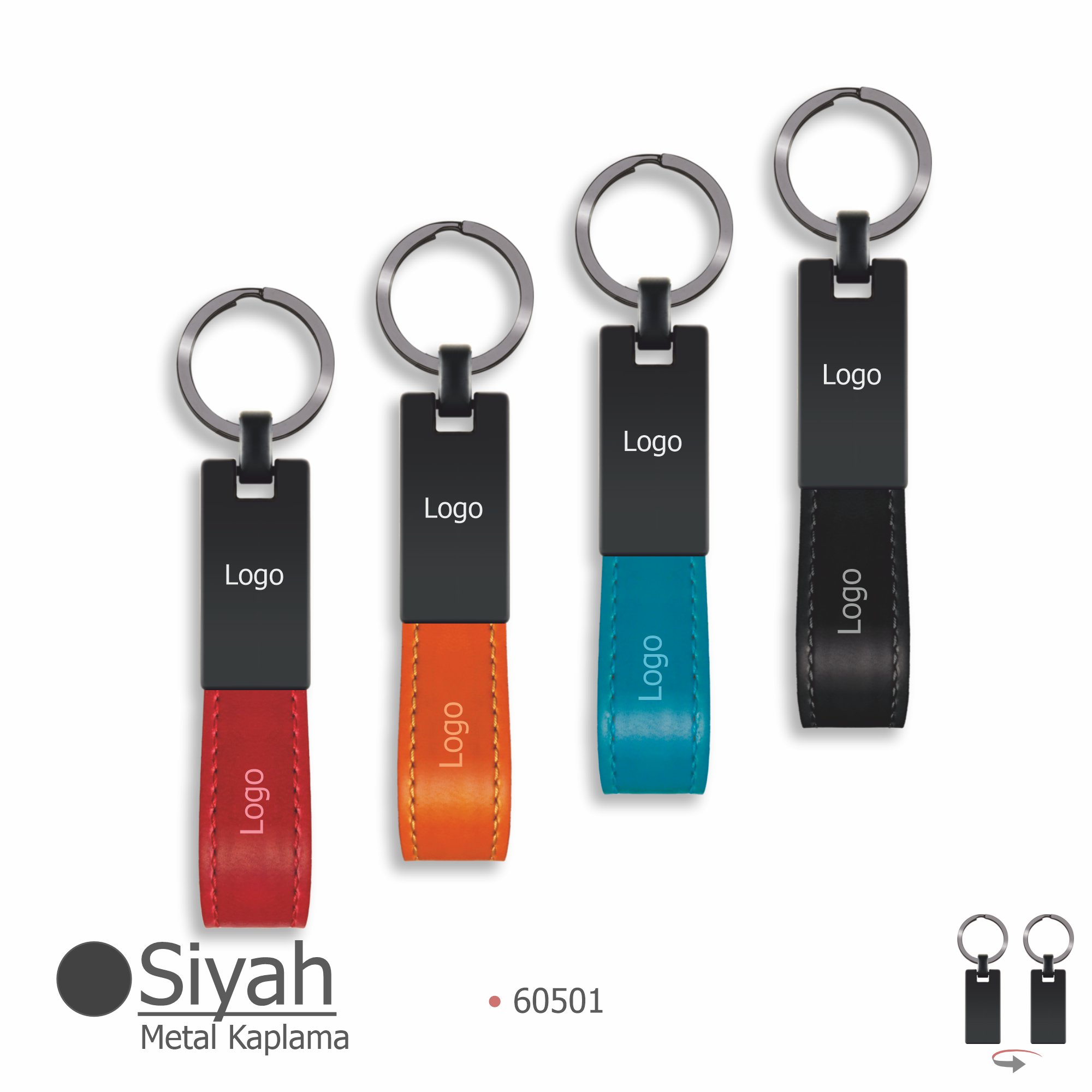 Siyah kaplama metal başlık (Çift taraf lazer baskıya uygun) + siyah metal halka