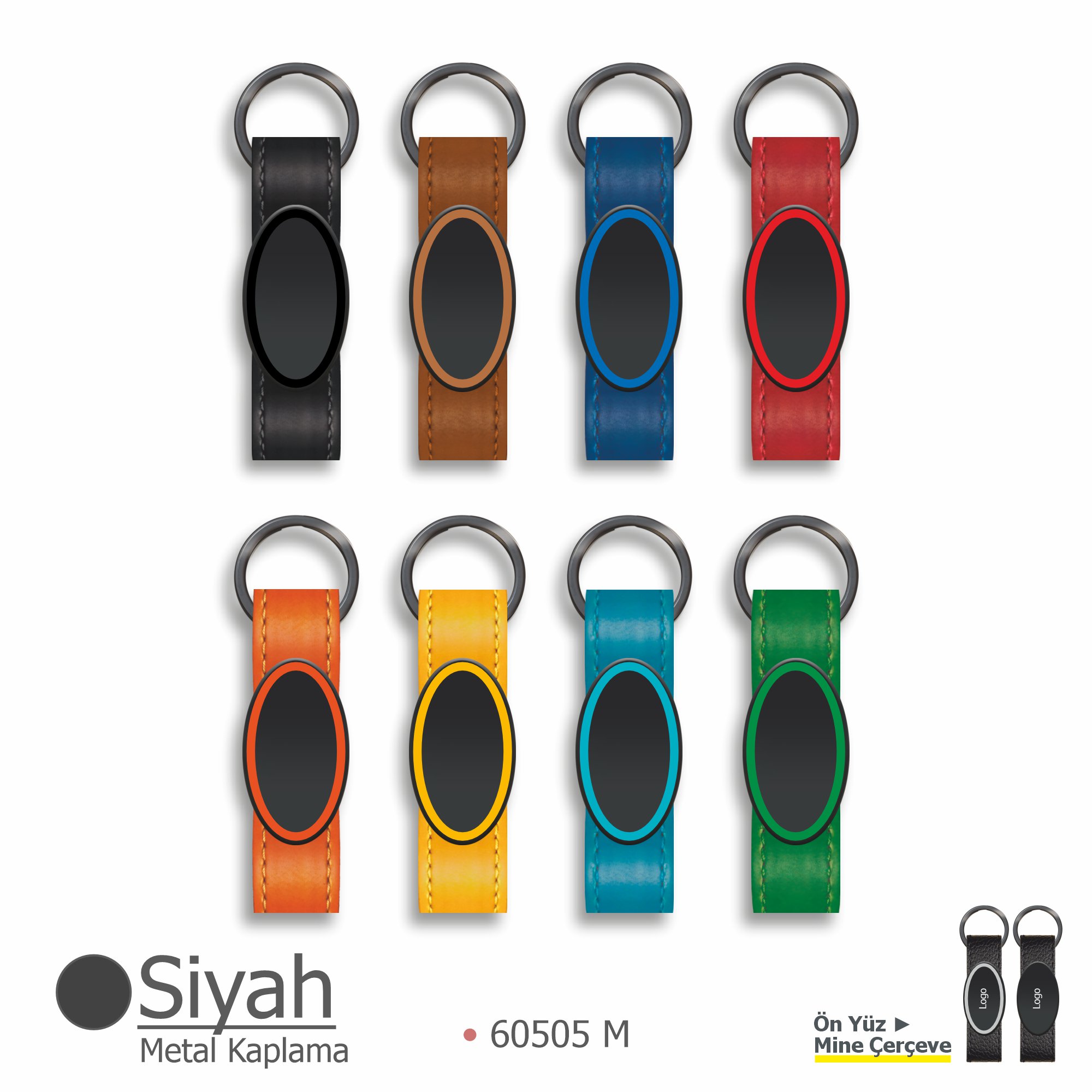 Siyah kaplama metal başlıklı ve renkli mineli (çift taraf lazer baskıya uygun) + siyah metal halka