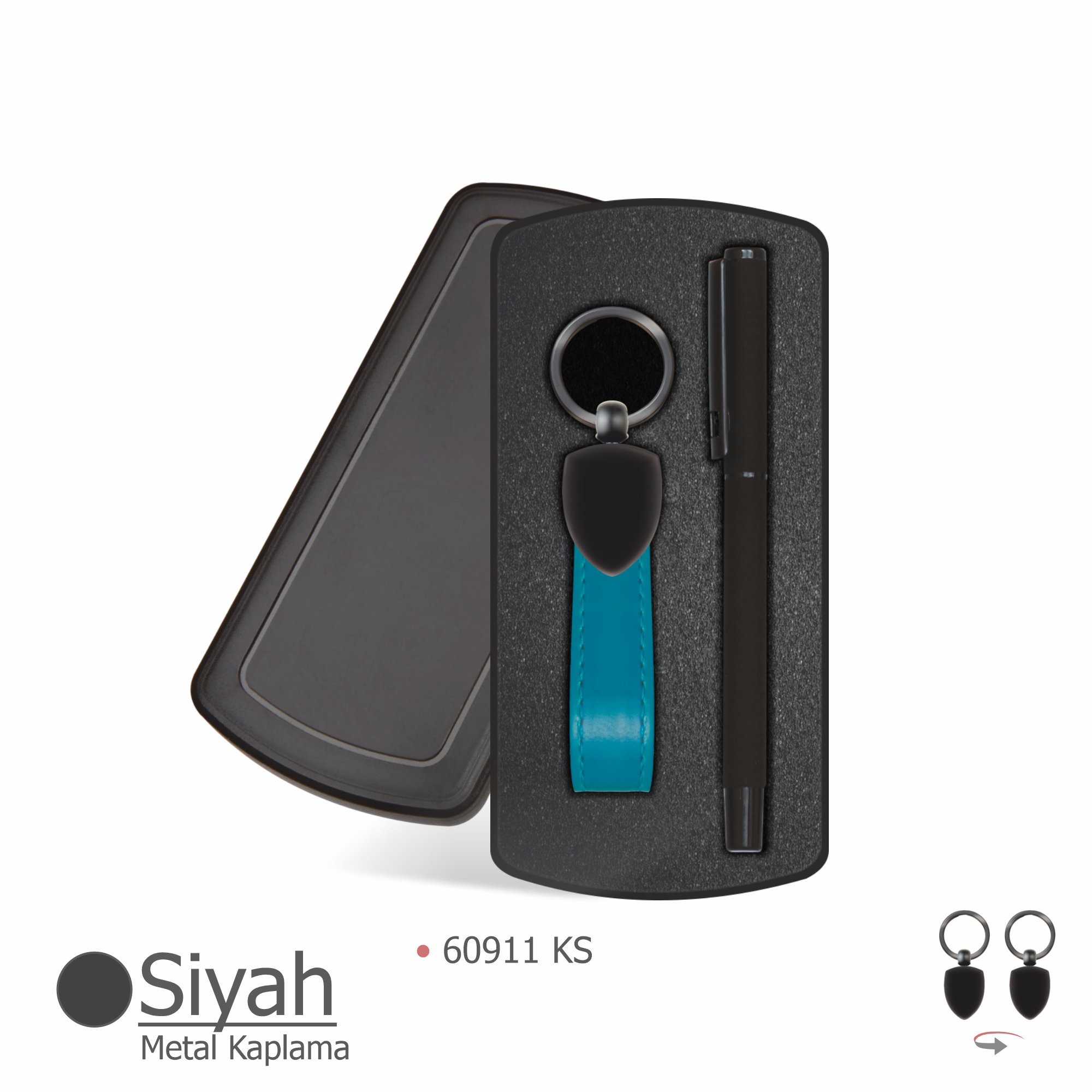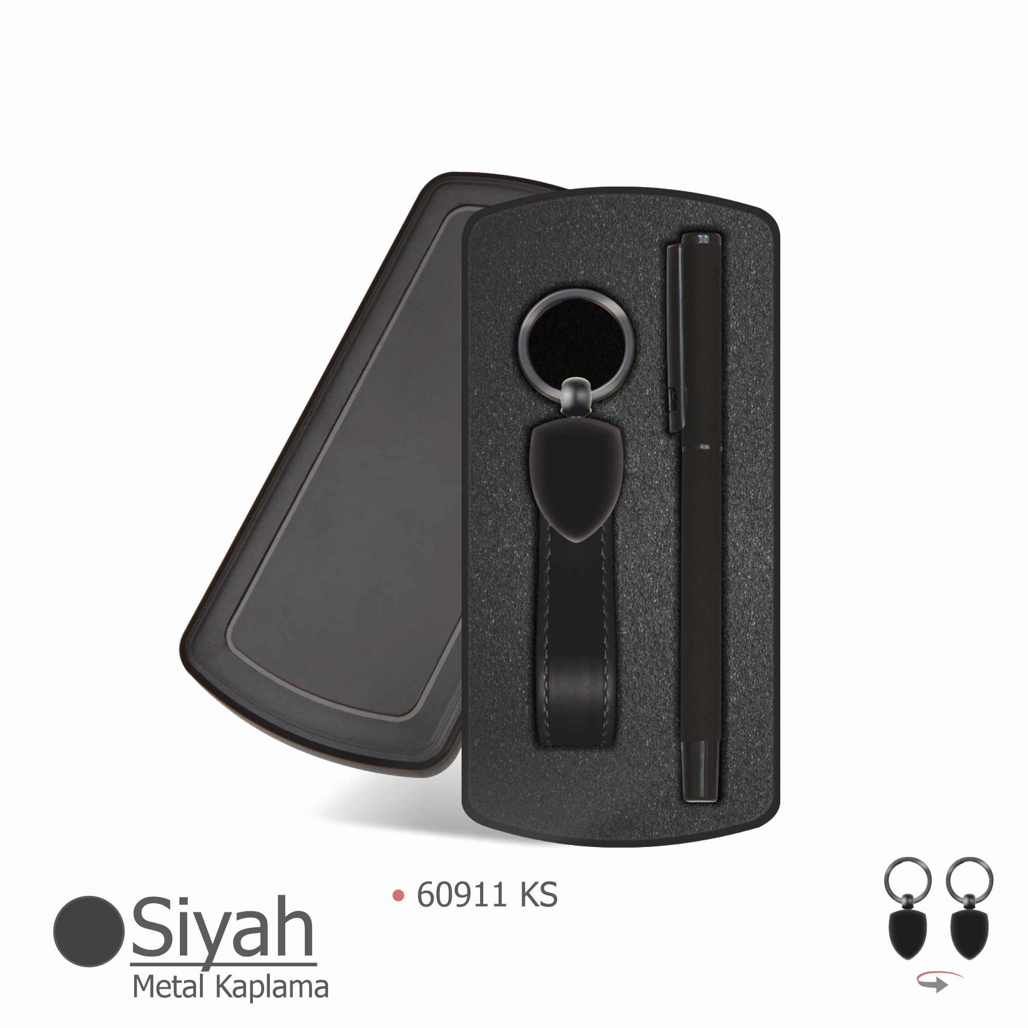 60911 Siyah kaplama metal başlıklı termo deri anahtarlık